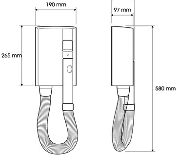 Montowana na ścianę suszarka hotelowa do włosów i ciała 1200W